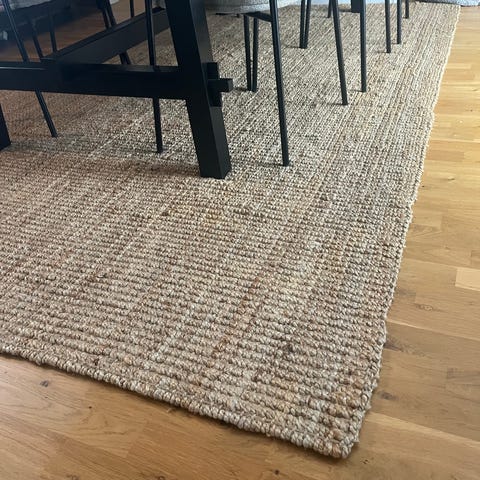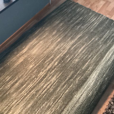 Skön matta i svart/vit mönster. Enkelte fläckor finns. Kvitto haves.