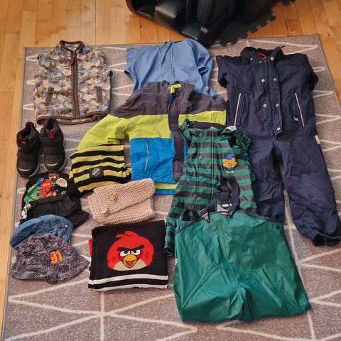 Min son har vuxit upp, så det är dags att lämna kläderna till andra barn som kan använda dem. Kläderna har använts, men har varit väl omhändertagna. De har tvättats med oparfymerat tvättmedel. Perfekt för dagis, som ombyteskläder.