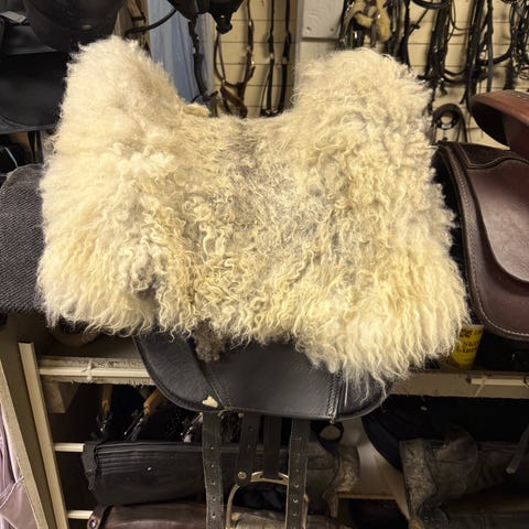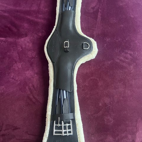 Mattes sadelgjord i svart färg med fårskinnsmaterial.