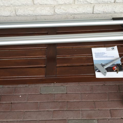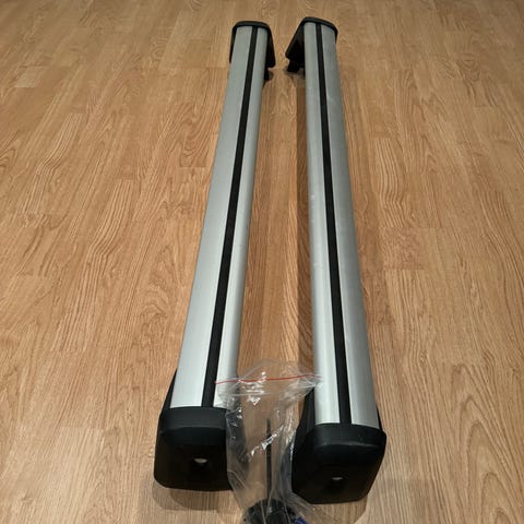 BMW E91 lastbågar 2 st. i aluminium med lås. Takräcket är original och används till en BMW E91-modell, lika bild 5.