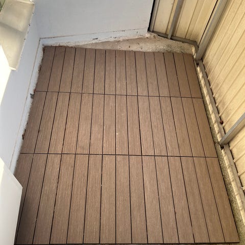 Trätrall golvplattor i trämaterial. Används för att skapa ett trägolv på balkonger, terrasser eller andra ytor utomhus. Plattorna är i trä och har en naturlig träfärg.
