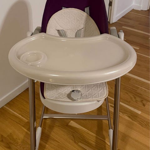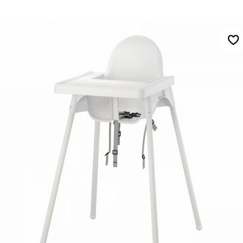 IKEA Matstol för barn med vit sits och grå ben. Designad för att ge en säker sittplats vid matbordet för små barn