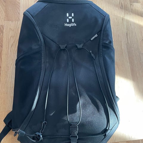 Obetydligt använd ryggsäck Haglöfs säljes. Komplett med bröstrem och midjerem. Ca 15 Liter. Skickar gärna med Post Nord.