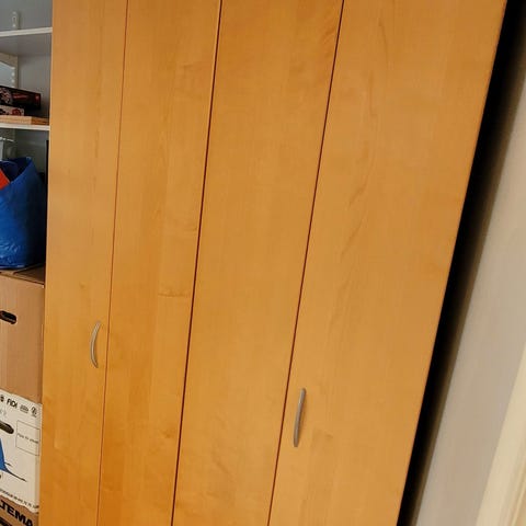Säljer Ikea Pax Garderob med hyllor och lådor som på bilden. Obs! En av stommen kommer vara med defekt efter nedmontering.