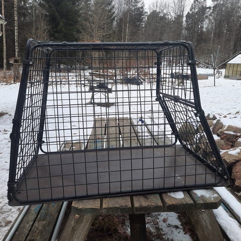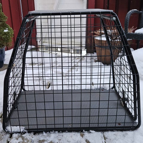 Säljer en transportbur, Kombi-Buren i metall med träbotten.
