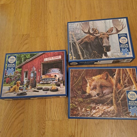Tre pussel från märket " Cobble hill ". Pappussel med 500 oregelbundna bitar.