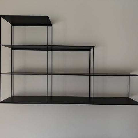 Vägghyllor från Storefactory i svart metall. Denna hylla är avsedd att monteras på väggen och erbjuder en minimalistisk och funktionell förvaring.