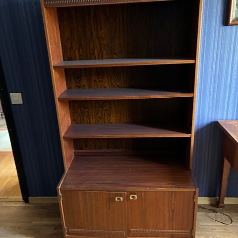 Bokhylla/skåp i mörkt trä bortskänkes mot avhämtning.