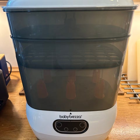 Baby Brezza Sterilizer Dryer Advanced är det mest avancerade sättet att sterilisera och torka flaskor, bröstpumpsdelar och tillbehör för bebisar. Denna revolutionerande maskin dödar 99,9 % av alla bakterier med naturlig ånga och torkar sedan automatiskt 33 % snabbare. Den har den största kapaciteten av alla sterilisatorer på marknaden och rymmer 8 flaskor, 2 kompletta bröstspumpsset, nappar och tillbehör från alla märken. HEPA-filtret säkerställer att den torkar med 95 % bakteriefri luft.
