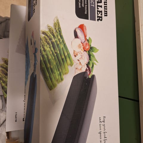 Voltage vakuumförpackare med tillhörande vakuumpåsar för förvaring och konservering av mat.