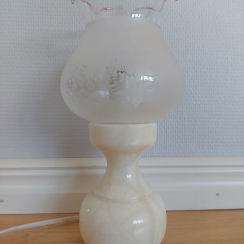 Äldre skrivbordsset i marmor, samt två fungerande lampor.