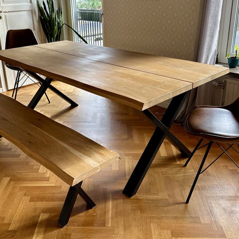 Finns även 10 st IKEA Norrnäs matstolar i trä som säljes separat för 250 kr/st.