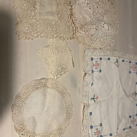 Duk med spets. Storlek 75 x 140 cm.