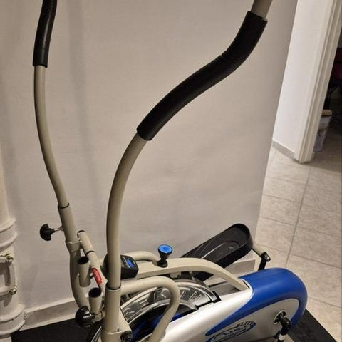 Crosstrainer från orbitrek. Synligt använd men fungerande. Displayen som visar tid, hastighet, distans och kalorier har behövt tejpats fast. Vet inte om den går att fixa, då det gamla batteriet (AA) hade oxiderat.