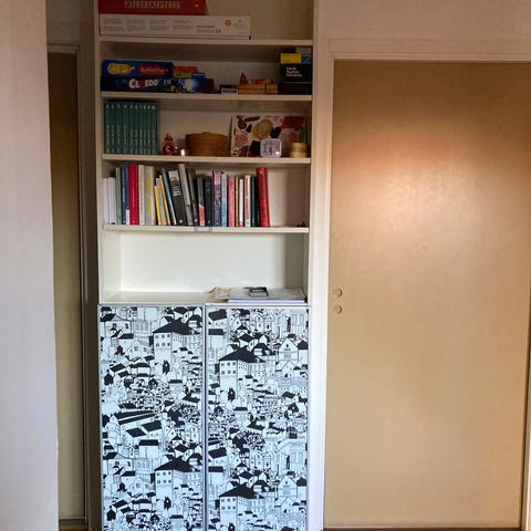 Billy bokhylla med glasdörr.