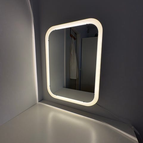 IKEA spegel i vit färg med rektangulär form. Spegeln är designad för att användas i badrum eller andra rum där en väggspegel behövs.