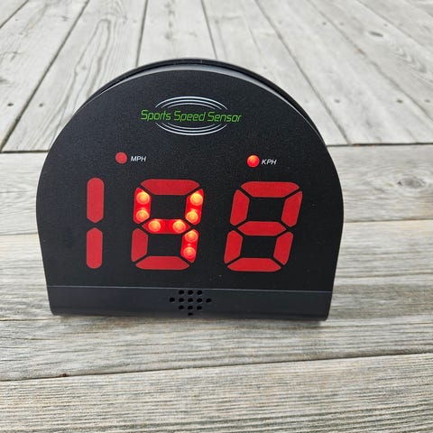 Basketkorg med svart och röd ram, inklusive nät och digital poängtavla. Korgen är avsedd för inomhusbruk och kan sättas på dörr. Den digitala poängtavlan visar poäng med LED-siffror.