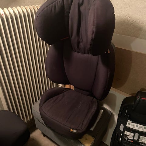 Bruksanvisning finns i ryggstödet. Plastfästen till iso-fix medföljer, även sätesskydd till bilens säte. (Ej med på bild)