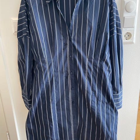 KappAhl skjorta i blå denim, storlek S för kvinnor. Skjortan har lång ärm med knappar och är tillverkad i denimmaterial.