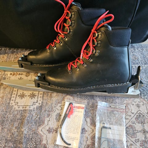 Remless. Och bra skinnpjäxor i storlek 43. Nordic Norm 75mm.