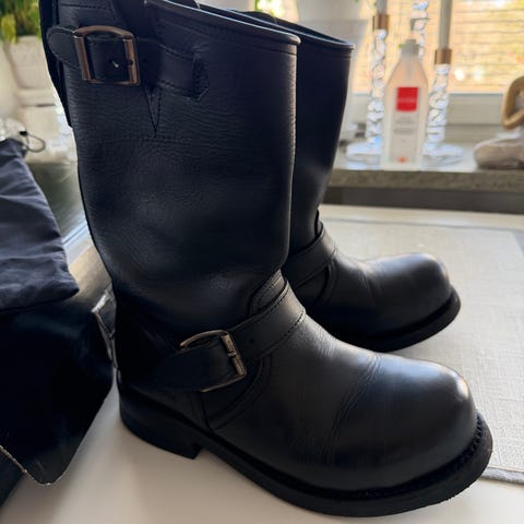 Fodrade grova bikerstövlar. Grov sula och rundad tå. Äkta skinn. Perfekt vintersko.