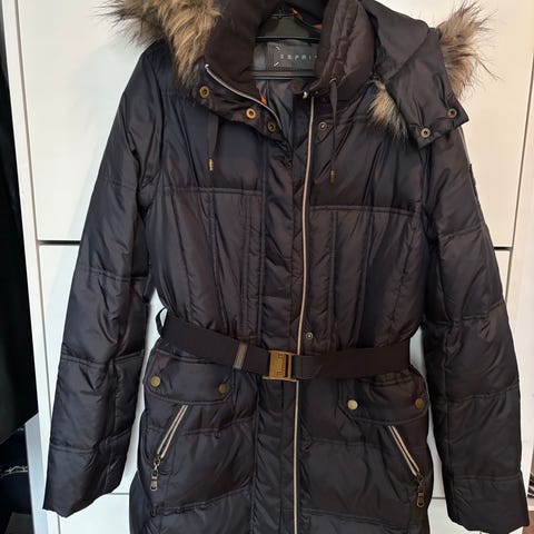Blå vinterjacka, Kappahls eget märke, storlek L. Krage i fuskskinn och bälte i midjan.
