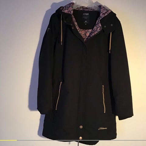 Jacka i storlek 38 för dam. Jackan är grå svart och tillverkad i polyester. Den har en varm och mjuk foderinsida, huva och flera fickor. Passar för utomhusbruk under kallare väderförhållanden.