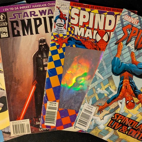 Marvel Hulk Serie Serietidningar med olika omslag och nummer. Innehåller flera exemplar med färgglada illustrationer och olika berättelser inom Hulk-serien.