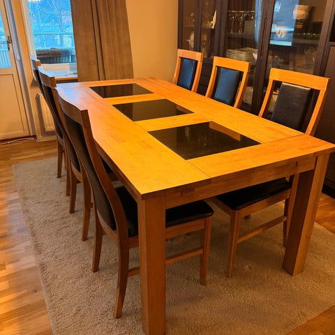6 stolar i ek till matbord