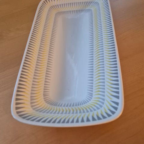 Uppläggningsfat i stengods. Framsida. Längd 55,2 cm, bredd 37, 2 cm.