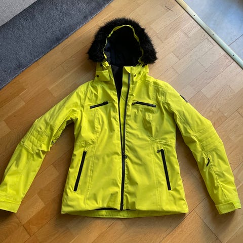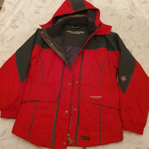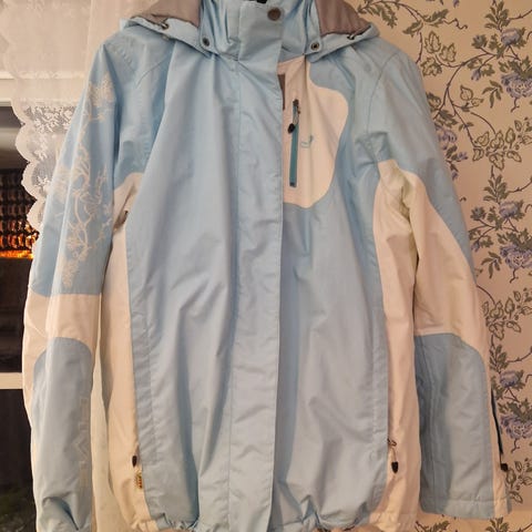 Säljer en snygg skidjacka från Five Seasons i vitt och svart. Jackan har en dragkedja framtill och snölås samt fickor och ficka för liftkort och en praktisk huva som man kan ta av. Den är vattentät och vindskyddande. Använd enstaka gånger.