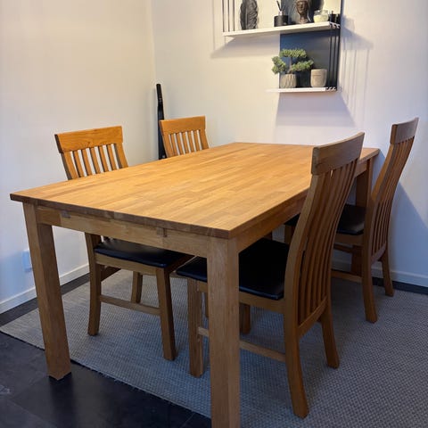 Matbord 140*90 i Ek med 4 stolar.
