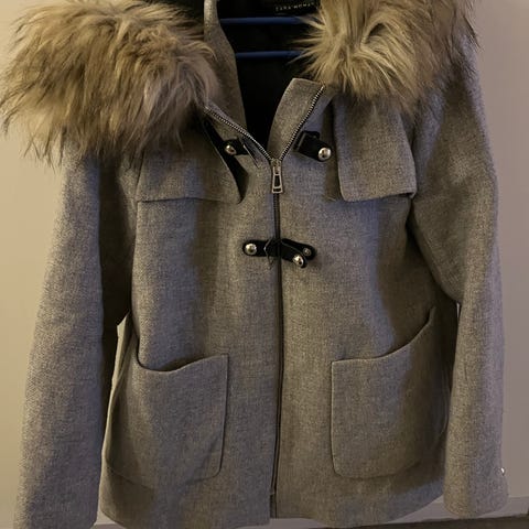 Zara Kappa svart färg, storlek M för dam. Tillverkad i polyester. Plagget har dragkedja framtill och två fickor med dragkedja. Passar som ytterplagg för olika tillfällen.