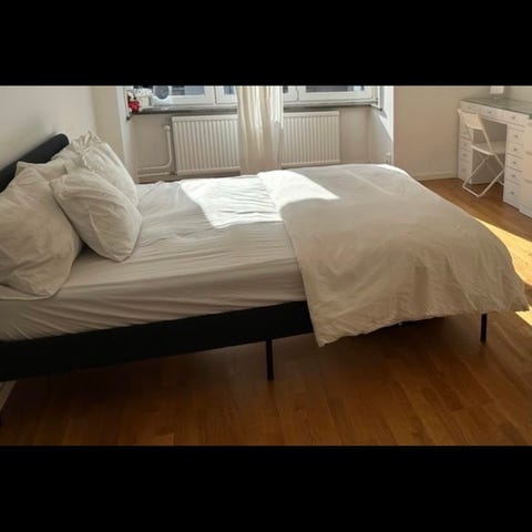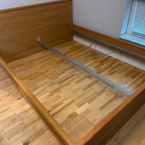 Sängbotten 2×80 cm med träben, madrass och bäddmadrass i memory foam. Allt är avtagbart och tvättbart. Mycket lite använt. Rent. Från IKEA.