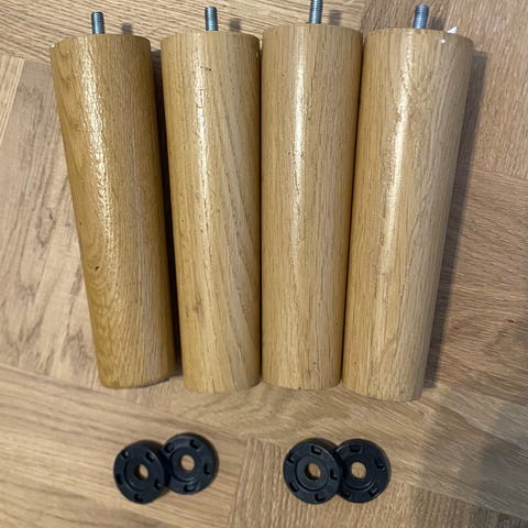11 st stabila möbelben i massiv ek. Passar t.ex. soffa, säng, byrå eller DIY-projekt.
