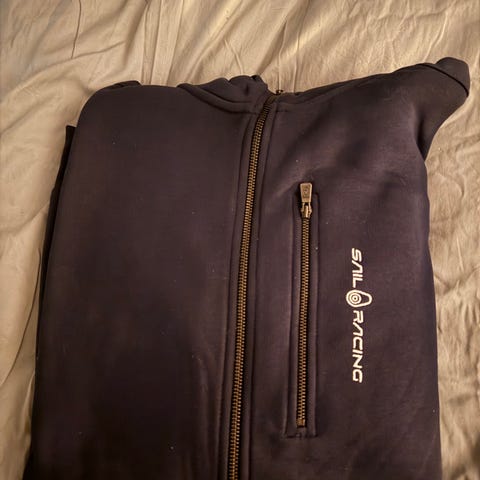 Ziptröja från Sail Racing i en mjuk ullmix. Tröjan har två fickor och en gummipatch på ena ärmen. Avslutet är rakt och luvan har en resårkant runtom