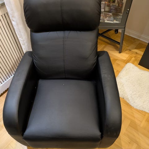 Massagefåtölj som går att fälla bakåt. Saknas strömsladd men det är enkelt att ersätta. Skön att sitta i som vanligt också. Bortskänkes endast eftersom jag vill fria upp utrymme i lägenheten.