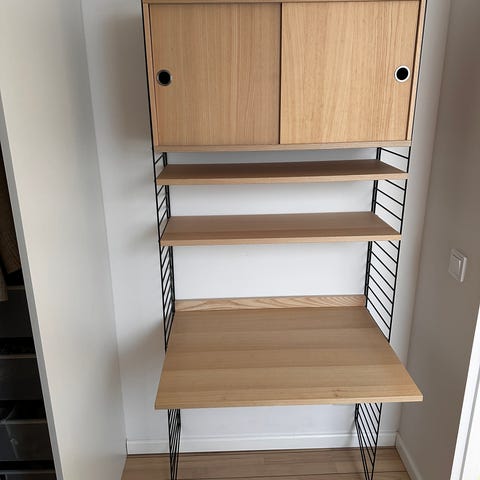 Skåp, hyllplan och arbetsskiva till Stringhylla
