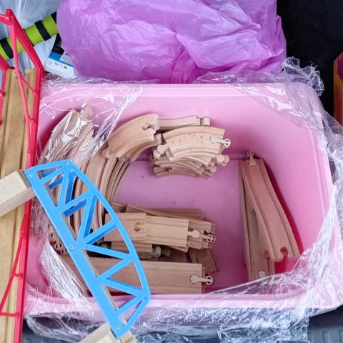 Säljer en tågbana med massor av tillbehör, mestadels Brio. Bland annat följer batteridrivna tåg med. Väldigt uppskattat av barnen :) Ett trafikljus som byter färg var också väldigt kul.