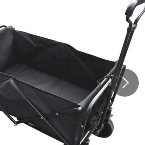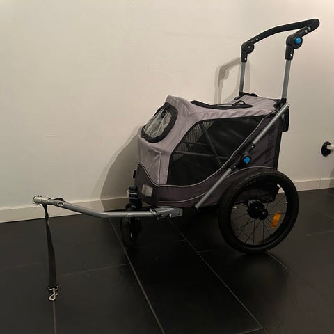 Ny hundvagn som är helt ny, då den tänkta resan aldrig blev av.