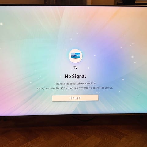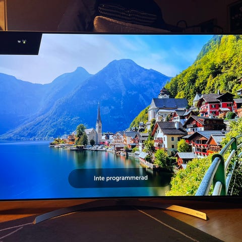 Skärmen har drabbats av inbränning (”burn-in”) eller pixelskador därför ser man några logotyper i olika deler av skärmen.