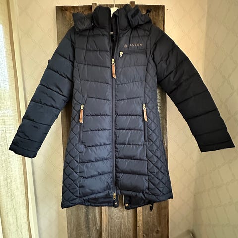 Vinröd fleecejacka Jackson, stl158-164. Jackan har dragkedja som är öppningsbar från båda håll. Två fickor med dragkedja. Materialet är mjukt och värmande.