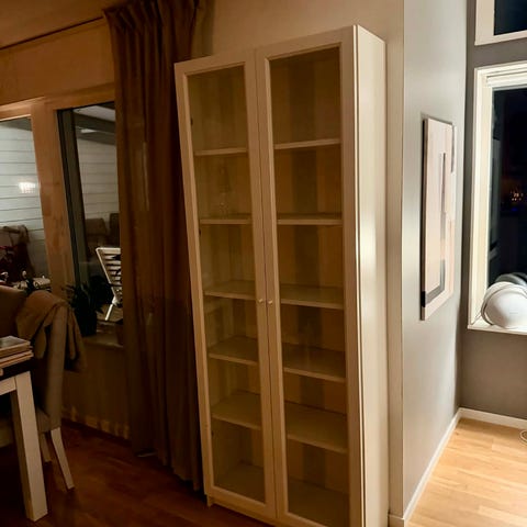 Säljer IKEA BILLY/OXBERG överhylla (delad i två) med vitrindörrar