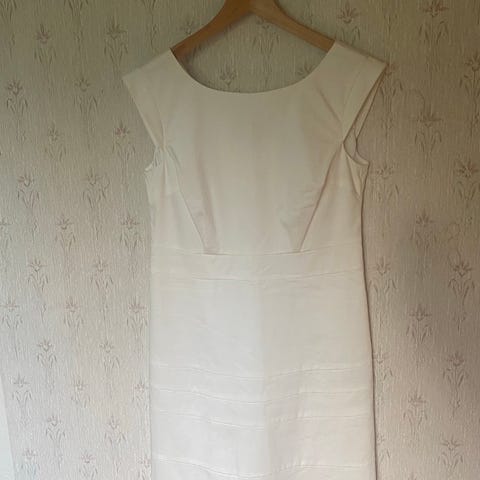Klänningen är helt ny med prislapp, aldrig använd. Kommer med band i midjan och har en dragkedja på sidan. Är i storlek 38 och är lång som kommer till fotlederna.