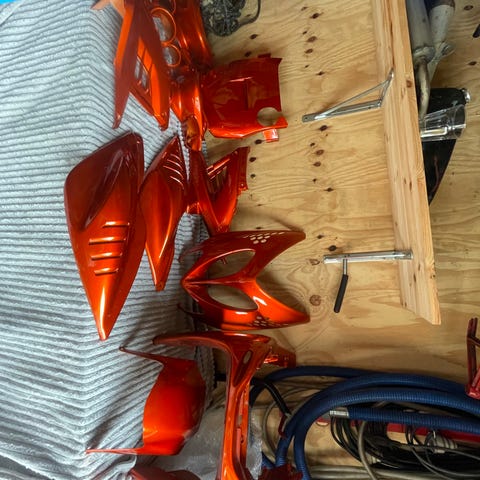 Jag säljer delar till en Yamaha TT600E, tank, sadel och sidokåpor. Delarna har suttit på en TT som bara gått 1600 mil.