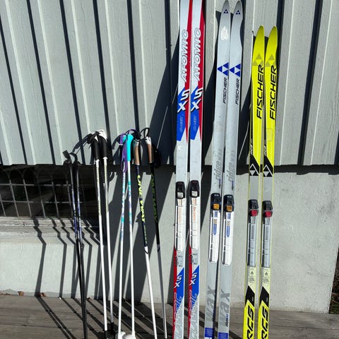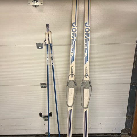 Jofa 210 cm, vallningsfria, Rottefella bindning inkl stavar, 140cm 100:- Sundins med Salomon bindning 100:- Skidskor Artex stl 42, 50:- Glasfiber stavar Lp moon svensktillverkade ej använda 150 cm 100:-