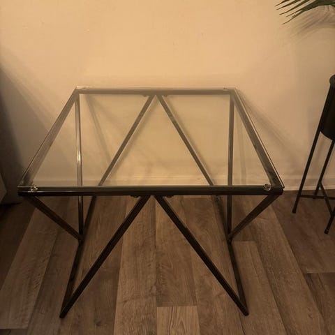 Bord, fåtölj och bord