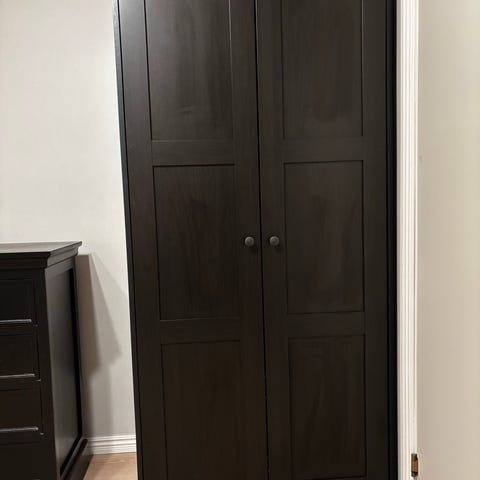 Ny garderob, köpt för 7 månader sen. Säljes på grund av flytt. Dörrar med. Inredning finns det klädstång, utdragsbara lådor, låda för smycken och praktiska skohyllor samt förvaringsväska.