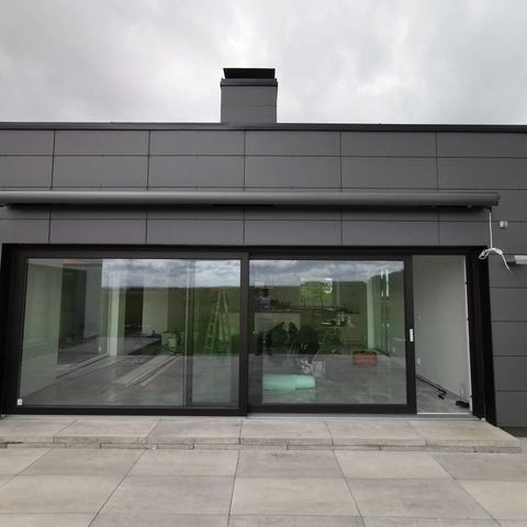 Skjutdörrar Iglo EDGE PVC - 3500x2100, 3 glas energi, helglas, säkerhetsglas inv. och utv.