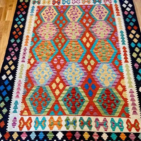 En vacker kelim matta som kan lysa upp vilket rum som helst. Mattal är helt ny och oanvänd .